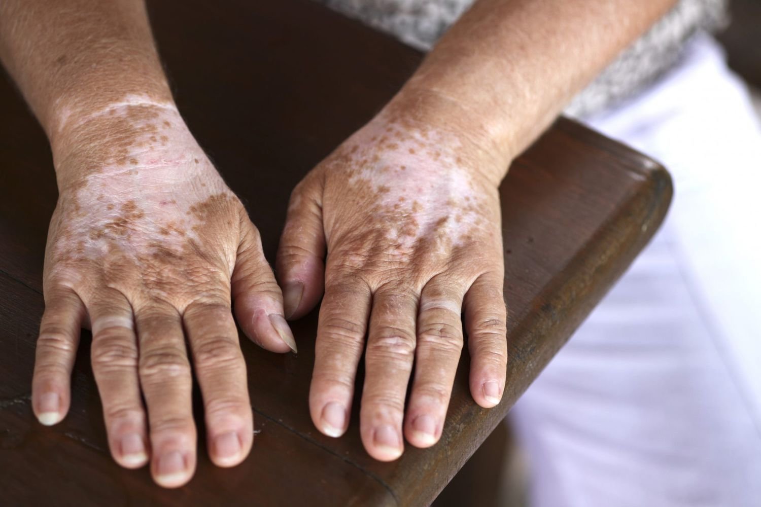 White skin patches due to pigment loss (vitiligo)